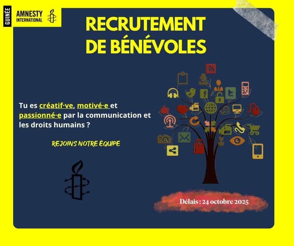Amnesty Guinรฉe recherche 2 bรฉnรฉvoles en Communication !