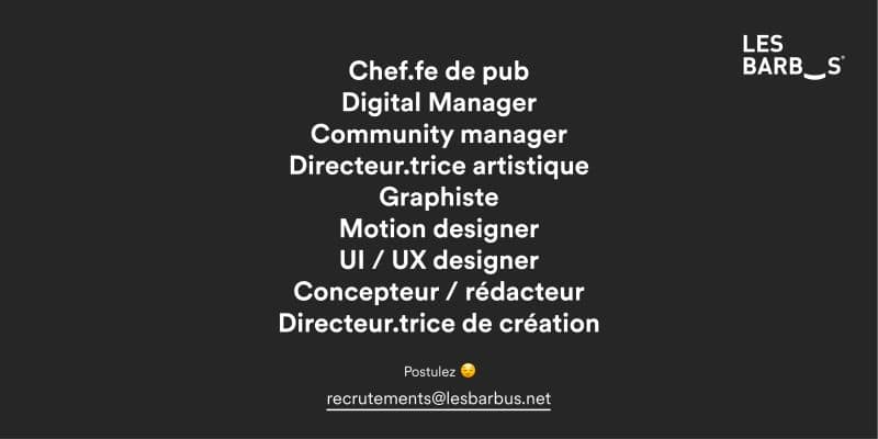 Envoie ton CV et portfolio à l’adresse recrutements@lesbarbus.net