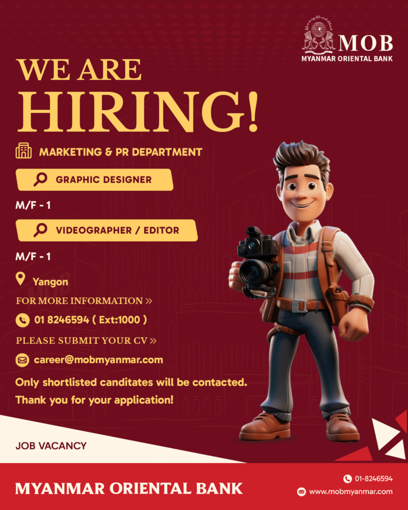 Interested candidate, please send an updated CV to career@mobmyanmar.com. Only shortlisted candidates will be contacted. Thank you for your application!