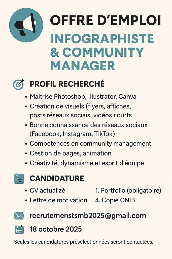 Capacité à réaliser des visuels impactants (flyers, affiches, posts réseaux sociaux, vidéos courtes).