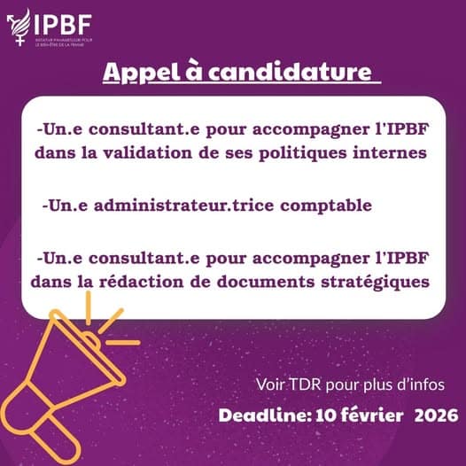 Initiative Pananetugri pour le Bien-être de la Femme -IPBF lance un appel à candidature pour les postes suivants :