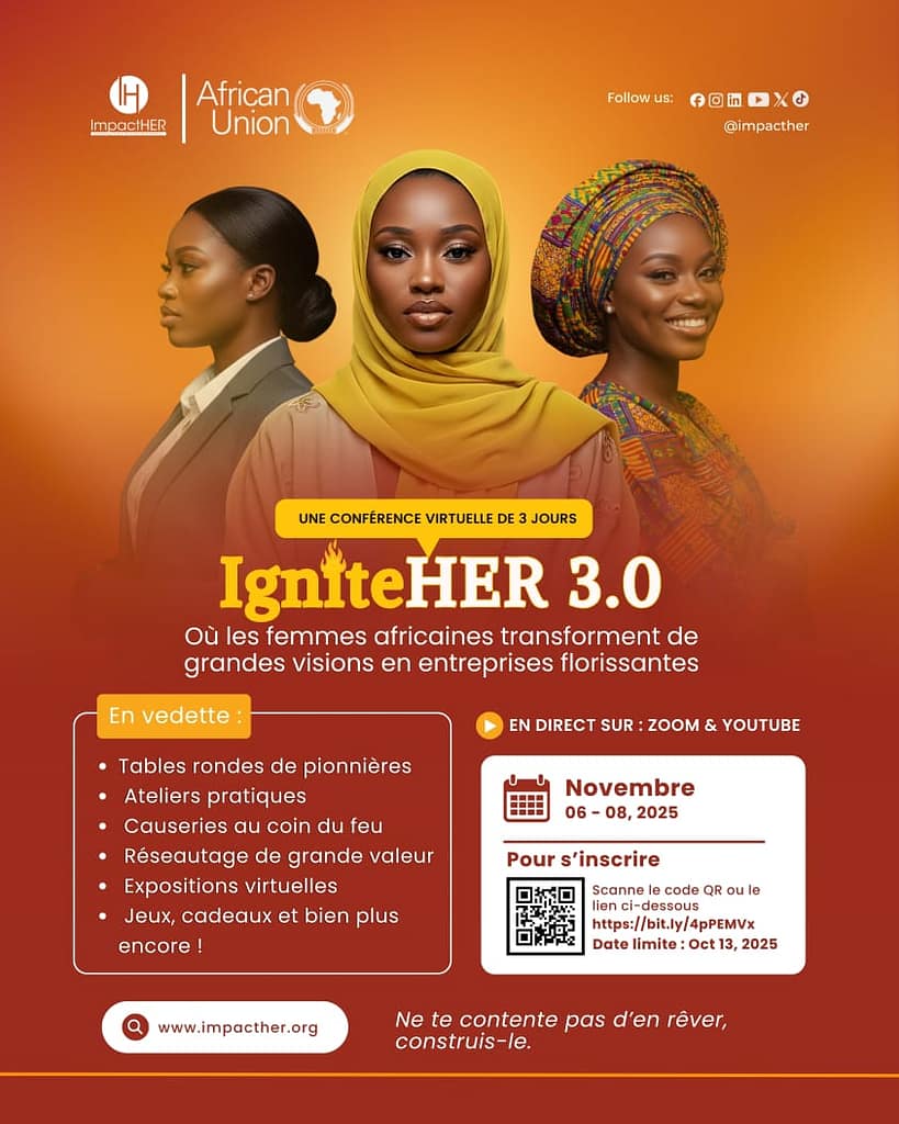 C’est ici que les femmes africaines transforment leurs visions audacieuses en entreprises florissantes. Prépare-toi pour 3 jours d’apprentissage intensif avec des panels de pionnières, des ateliers pratiques, des conversations inspirantes et des sessions de réseautage de grande valeur.