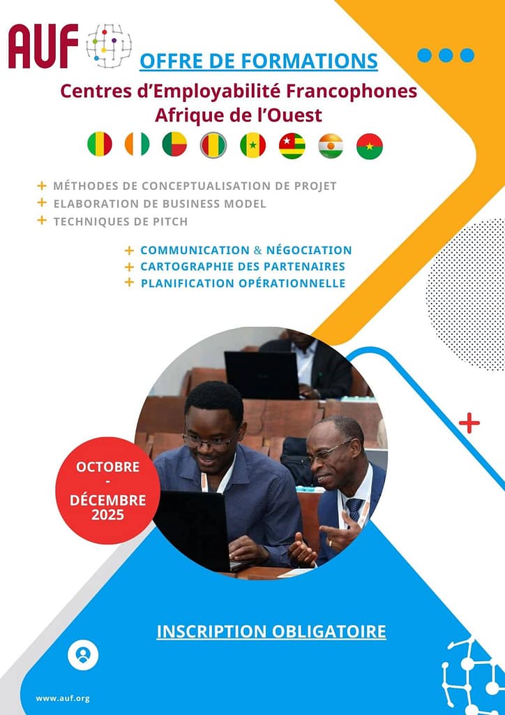 les Centres d’Employabilité Francophones – AUF – Afrique de l’Ouest lancent un cycle mixte (en ligne & présentiel) gratuit pour accélérer vos projets.